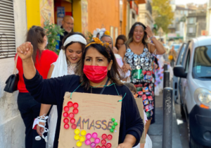 Le groupe Passer’elles, composé de femmes militantes engagées et constitué sur la MPT Belle de Mai, a défilé le samedi matin. Les usager.ères ont déambulé dans les rues du quartier, autour de la thématique de l’éco-citoyenneté. Accompagnées par un groupe de percussions africaines, les femmes du groupe Passer’elles, notamment, avaient confectionné des habits « haute-couture » composés de produits collectés, afin de sensibiliser au recyclage.
